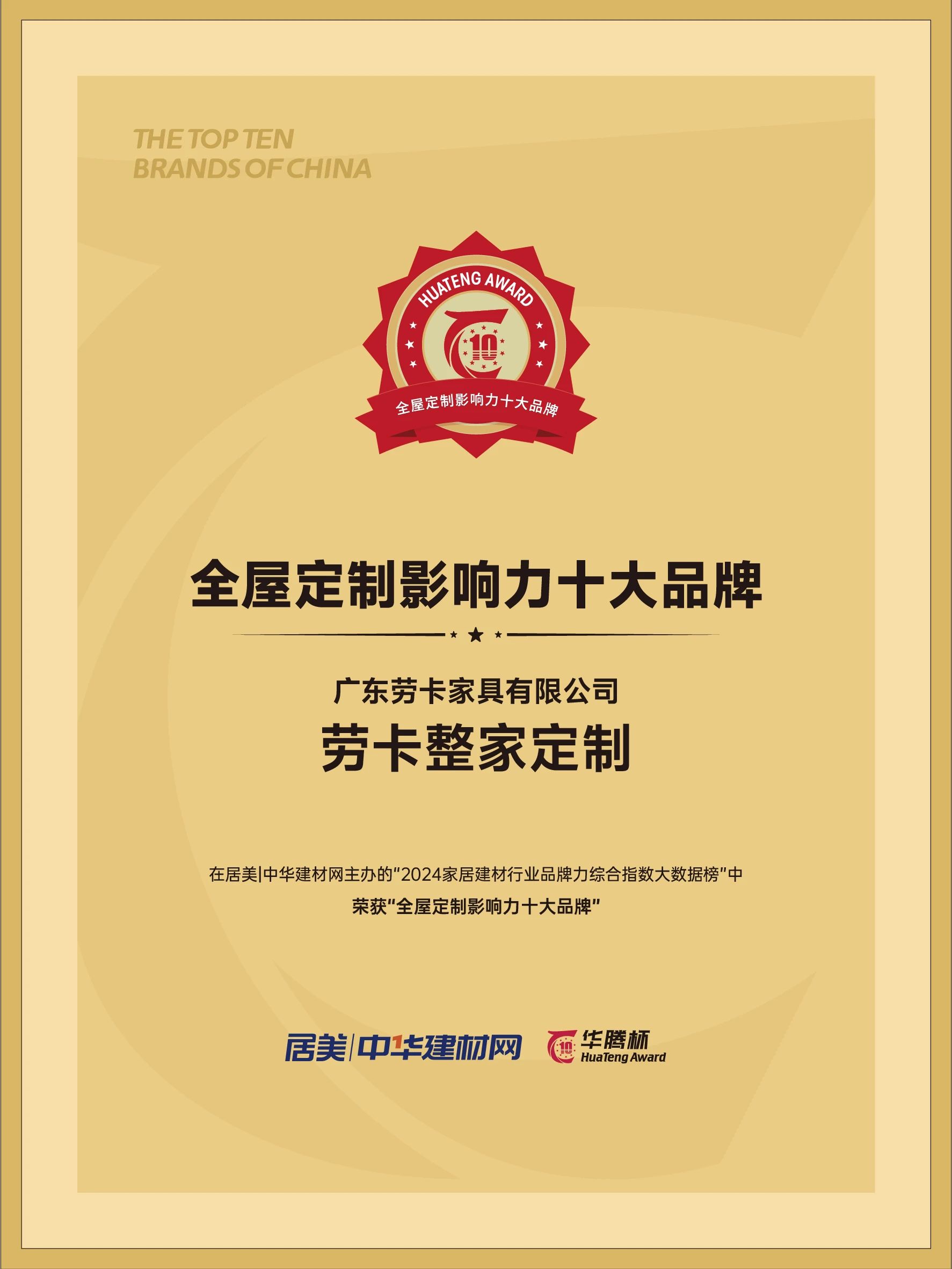 AG真人官方此次荣获“华腾杯”2024年全屋定制影响力十大品牌,这是对我们不懈追求卓越品质和顶尖质量的认可和褒奖。