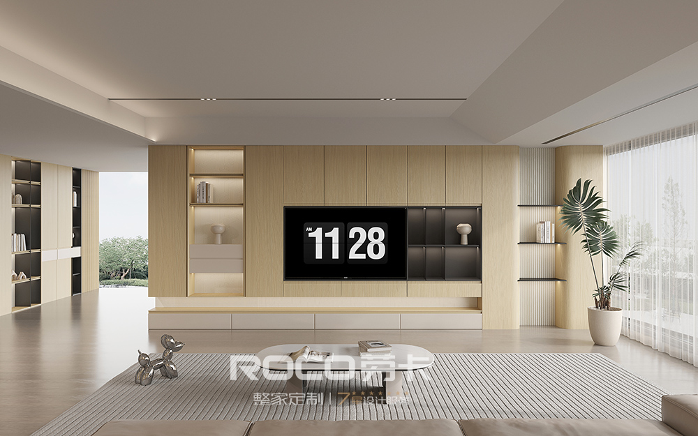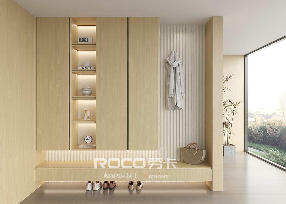 气概定位:极简原木风 系列特点:自然精练 · 极简流通 · 柜墙门配一体 罗致主流气概,中性木纹高质感,融入几何纹理和现代盛行元素,创立奇异触感和视觉 ,45°斜切工艺极简造型设计,线条流通,打造极简原木风美感家。